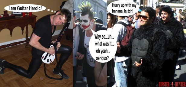 Hipsters play dress up all year round. So when Halloween rears its playful head you bet your tight pantalones they will take it to the next level. Role playing, makeup, make believe, gorilla suits, it’s all fair game as long as it’s totally ironic. So do as the hipsters do this Halloween Weekend: drink, snort, bitch and screw your way to happiness.